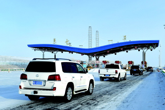 12月14日,华北某县级市的收费站未设ETC通道,却大力推广ETC。图为车辆正在通过人工收费口。 贝赫摄