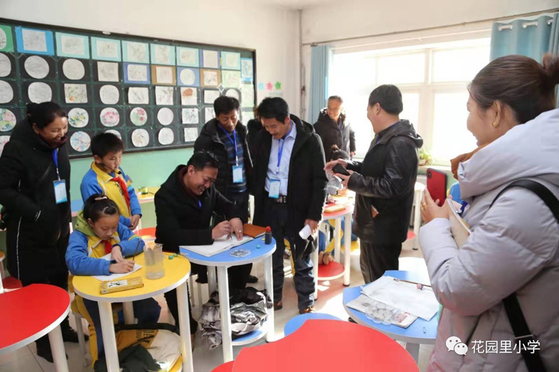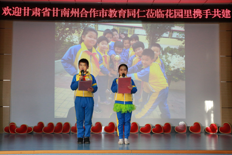 远道而来的客人们参加了花园里小学数学教研组的课例研究,听了语文、外语、心理班会课,期间还观看了学生大课间活动以及篮球、足球、跳绳、科技、团扇、机器人社团课程的展示,同时花园里小学的老师与学生们还用一台精彩的文艺演出欢迎客人们的到来。在聆听了学生的校园文化、班级文化解说后,客人还接受了校长小助理和校园小记者的采访,花园里小学向甘南州的教育同仁赠送了由学生制作的团扇作品以及师生们书法作品作为留念。