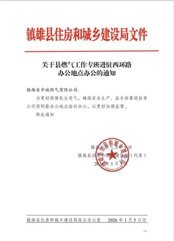 1月18日,中城燃气公司接到的《通知》